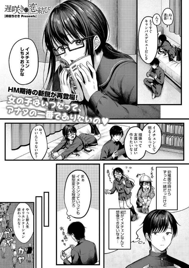 「イメチェンしたい」と言い出した、真面目&優等生の結。幼馴染みの透吾は半信半疑で受け流すが、結の決意は本物だった。髪を染め、胸元を大胆に開けた結は、別人のように美しくエロく変身していた。しかし途端にチャラい先輩に目をつけられ、お持ち帰りされそうになる……そんな結を守ると同時に自分の気持ちに気づいて、結に告白する透吾。そして、結のイメチェンは、実は透吾のためだと知るのだった──。