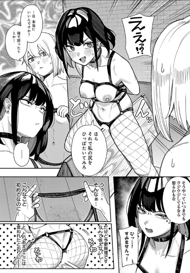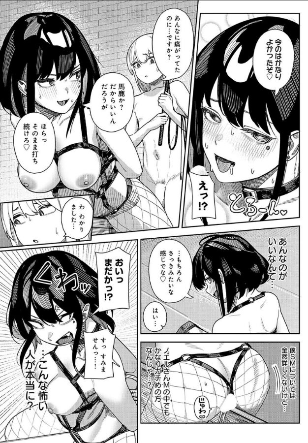 親友の借金の保証人になってしまった僕は、金融会社の社長・神門ノエルさんに借金を取り立てられていた。詳しい話をしようと案内された奥の部屋には、なんとSMグッズがずらり……!! 痛めつけられる覚悟を決めた僕だったが、ノエルさんは意外な言葉を口にする。「イジめられるのは私の方だ」–!?借金を返す代わりに、ノエルさんのドM性癖を満足させることになった僕。彼女に鞭を振い、蝋燭を垂らすうち、僕の方も興奮を抑えきれず……♪ 癖つよヒロインメーカー・牛蟹合戦先生が贈る、サディズムの扉を開く新感覚SMセックス☆