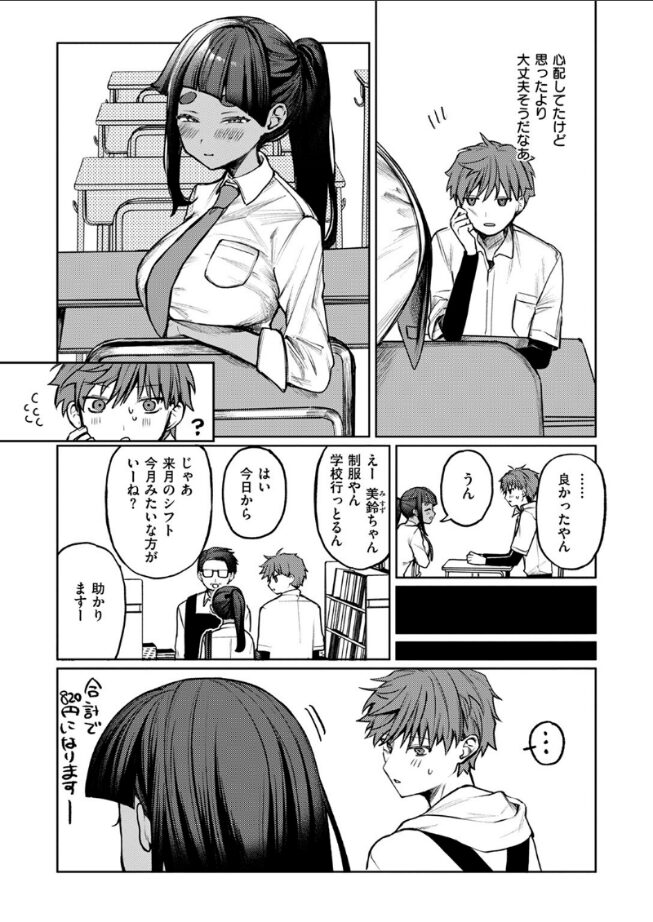 「うわー手おおきいね これ帰り道だけしか握れんの?」不登校のクラスメイト・美鈴(みすず)さんはバイトの同僚だ。学校ではほぼ会ったこともないが、バイト先では仲良くやれている……はず。本人は不登校なのもそれほど気にしてなさそうな様子。だけど俺が誘うと、翌日あっさり登校してきて……? それから毎日、だんだん一緒にいる時間も長くなりだし、ついにバイト終わりに家へ招かれ……。