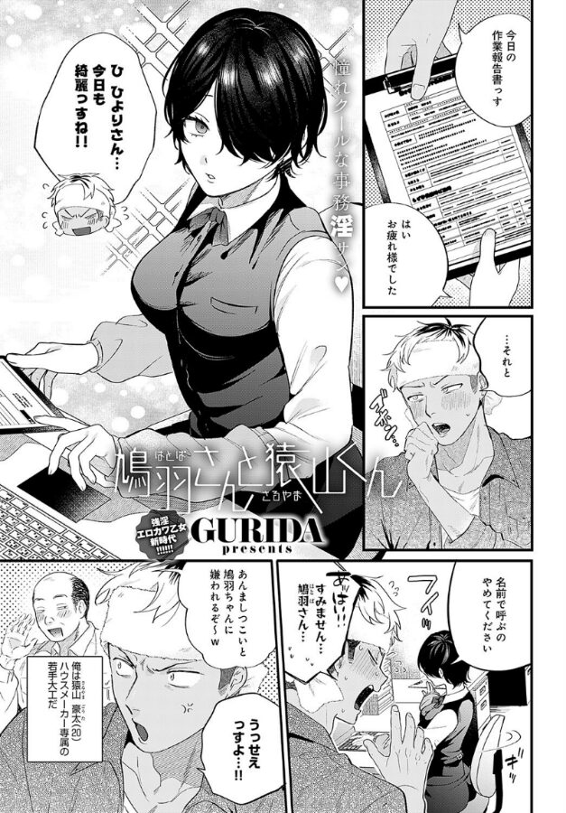 若手大工の猿山豪太は、童顔で小柄な事務員・鳩羽ひよりにメロメロ。しかしミステリアスでクールなひよりに、豪太は全く相手にされなかった…。ある日、夜遅くに事務所に戻った豪太は乱れた制服で頬の上気したひよりさんと出くわす。色っぽい彼女の姿に思わず勃起してしまう豪太。そんな豪太のバキバキチ○コを見たひよりは「それで外に出るんですか…?」と豪太のチ○コを舐めはじめて…!?新時代の積極女子マスター・GURIDA先生が贈る、ドカタ男子と淫乱OLのケダモノSEX!!