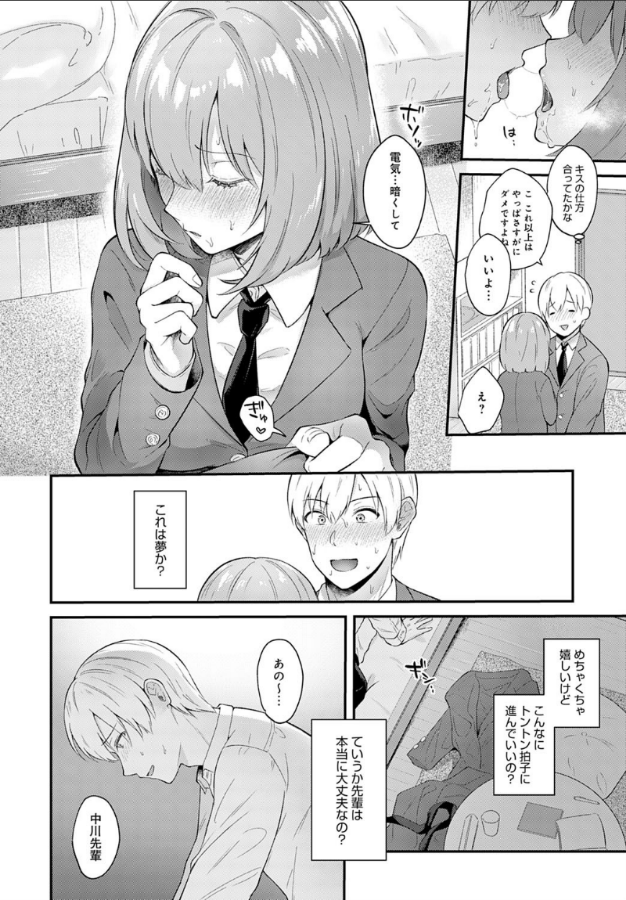 告白OKはもらったけど、なかなか関係が進展できずにいる先輩と自室で勉強中。偶然、密かに用意していたコンドームが彼女に見つかってしまい…。要注目イチャラブ職人による必見の極上とろけ表情と幸せえっち!