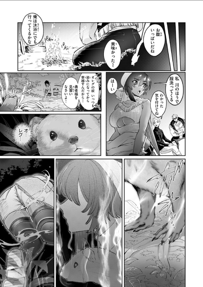 勇者パーティの褐色巨乳美女・ナランと、スケベだが心優しいオレグ。いつも意地の悪い言葉を吹っかけてくるナランだが、一方オレグはナランのことが好きだった(理由:体がスケベだから)。そんな旅の道中、水浴び中のオレグに突然ナランが「好き…」と迫ってきた!?あまりの急展開と、ナランの身体のエロさに我を忘れてしまうオレグ。彼は知らない。日中、道端で助けたイタチが実はシェイプシフターで、彼の元にナランの姿で《恩返し》に来たことを……。