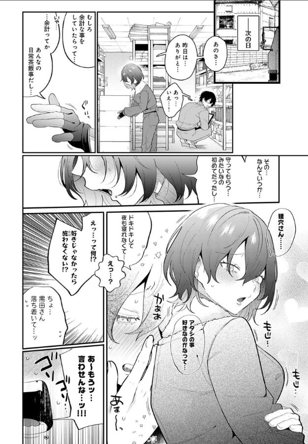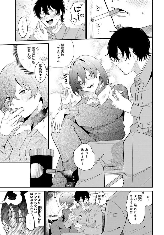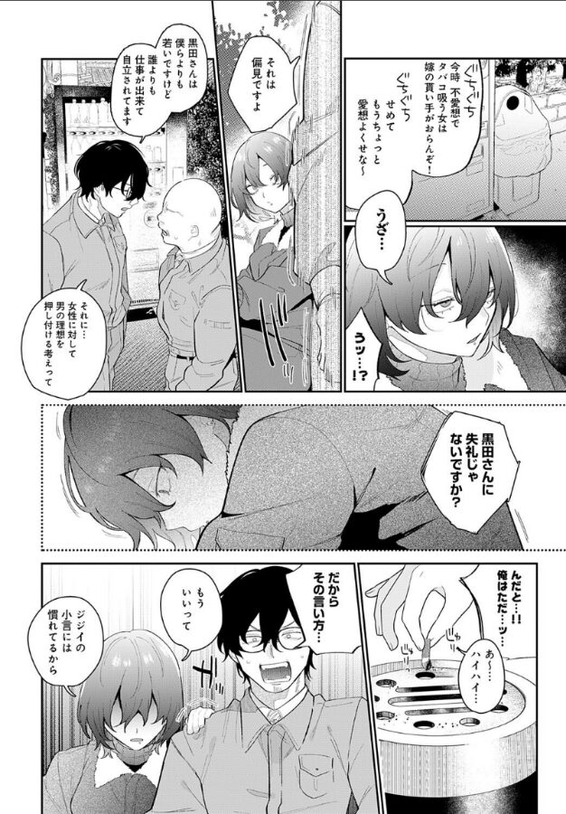 工場で一緒に働く年下ドライバー女子・黒田さんは、いつも不機嫌そう。ある日、ふとしたきっかけで、彼女と一緒にタバコを吸うことに。ぽつぽつと言葉を交わし、垣間見えた黒田さんの笑顔に、距離が縮まった気がして思わず嬉しくなる。だが、その矢先、職場のおじさんが彼女に絡んできた!! 「女の子がタバコを吸うなんて」と古い価値観を押し付けるおじさん。そんなやり取りに我慢できず、俺は彼女を擁護してしまう。出しゃばりすぎたかと不安になる俺に対して、黒田さんはいつものように塩対応──かと思いきや、翌日、「昨日は… ありがと…」とお礼を伝えてくれた! さらに、「狸穴さん…… アタシのこと好きなのかなって… ドキドキして夜も寝れなくて…」って、急にそんな距離感!? 勢いに任せて、仕事終わりに会う約束をした俺たち。黒田さんの運転で向かった先は、まさかのホテルで──!!新時代の積極女子マスター・GURIDA先生が贈る、工場勤務のクールな年下タトゥー女子に誘われSEX☆