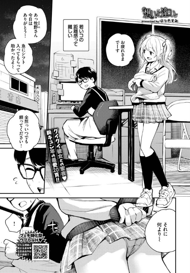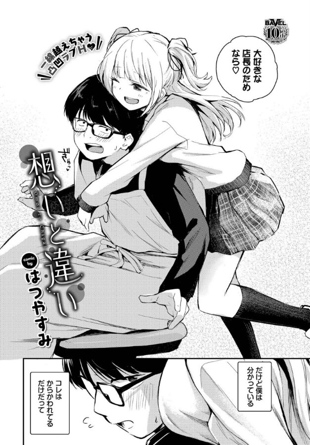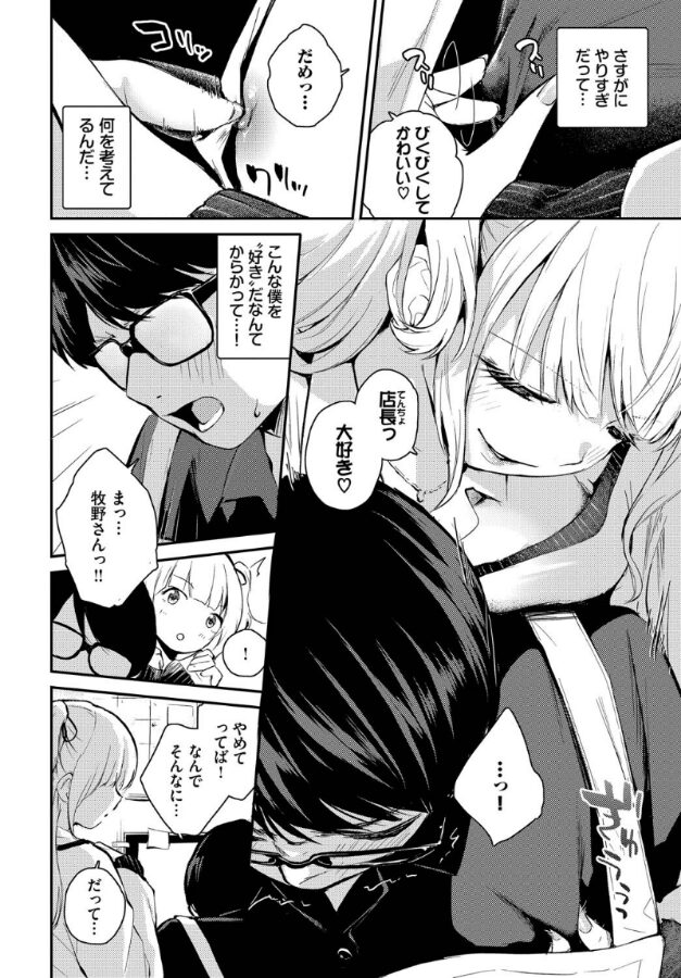 【終業後も二人でいたい♪ 心揺れるバイトと店長の禁断H!】ナマイキ胸キュンコミッカー・はつやすみが贈る、一途なヒロインの告白譚!!職場のアルバイト・牧野からいつもぐいぐいアプローチされている店長。ある日の仕事終わり、二人っきりの事務所で店長は彼女に抱きつかれるが、勘違いしないように冷静を装う。しかし彼女は後ろから店長の乳首をイジり始めて…勃起したちんぽを咥える!彼女の本気の気持ちに気づいた店長は挿入し、イチャラブセックスを始めるが…!?
