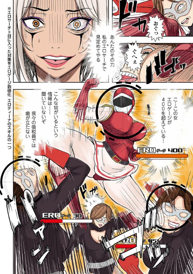 この国の大王が支配する政府から命じられ、庶民から重税をむしり取る罪務帝国。その女幹部のエロティーナ様(三石早苗)は、今日も部下を引き連れ、街で強●的に徴税を行っていた。だがそこにエロレンジャー(レッド)と名乗る女ヒーローが現れ、エロティーナたちを圧倒的エロパワーで撃退する!本社に逃げ戻ったエロティーナはエロレンジャーに対抗するためより強力なエロパワーを持った怪人を造ることに。そして怪人になる素質を持った人間を誘惑し、アソコから怪人化因子・エロニキスを注入する……。