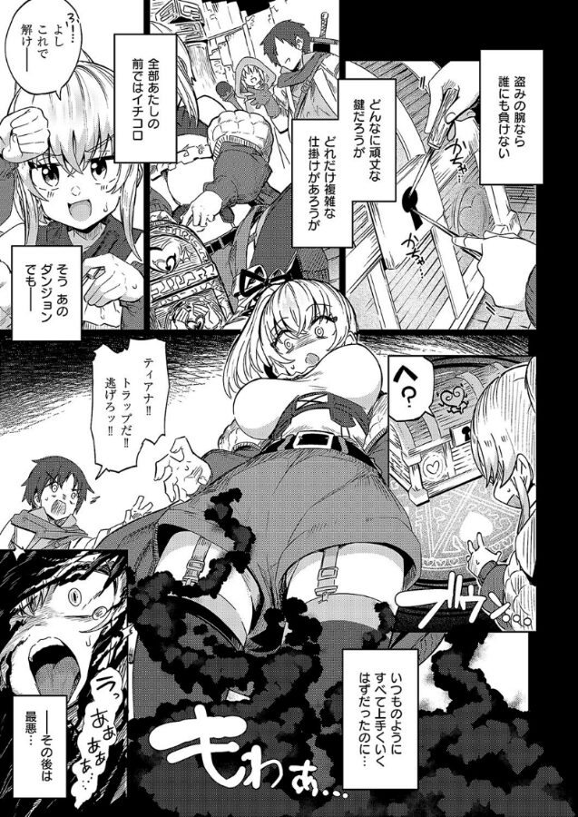 凄腕シーフのティアナはまさかの罠にハマり、勝手に男を誘惑してしまう’魅了の呪い’をかけられてしまう。そこで呪いに詳しい、かつての仲間のおじさん魔法使いに相談すると、呪いを解く方法は「異性とキスをする事」みたいで、早速キスをする事に。しかし、思ったより呪いが強くて呪解できず、次は「性器を挿入」する方法を試す事になり…?ドタバタHの担い手・ねろ太郎。先生によるファンタジーエロコメディ★