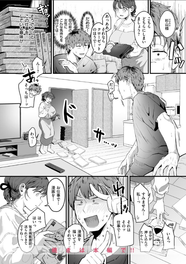 「いいんですか? シちゃっても…♪」 汚い部屋をなんとかすべく《家事代行サービス》を利用することにしたエロマンガ家の杉山(すぎやま)。オバちゃんが来ると思って油断していたら、やってきたのはデッッッッカ乳デッッッッカ尻のハウスキーパー・水谷(みずたに)さんだった。 若い女性が家にいる緊張感と、徹夜明けの脳が見せる妄想に苛まれながら、なんとか社会性を保とうと仮眠のため自室に籠る杉山。 しかしその仮眠で「水谷さんにちん嗅ぎされる夢(?)」を見てしまい、どうにも現実感が強い夢に混乱してしまう。 まさかと思ったが……次の予約日、玄関に現れた水谷さんは服装がめっっっっちゃエロくなっているのだった!!! これは…つまり…そういうコト…!?!? オトコもオンナもムラムラ臨界♪ 大ボリューム40Pで贈る性欲大爆発!