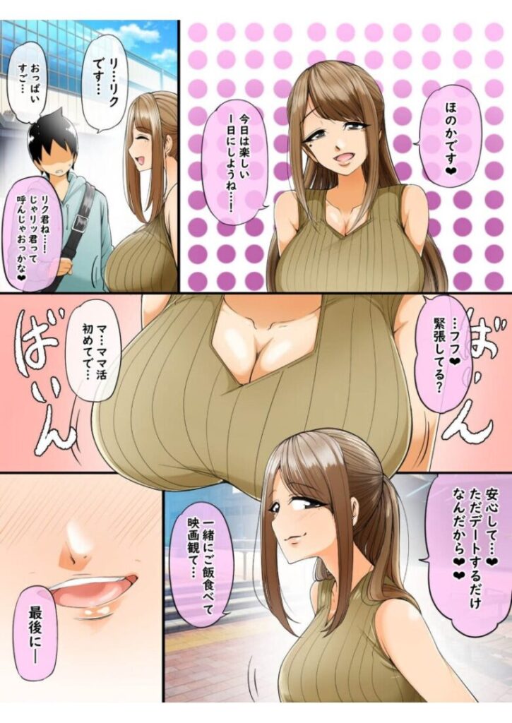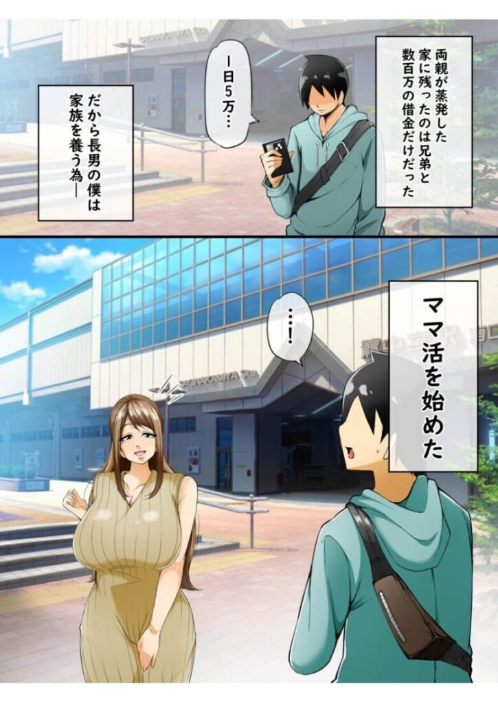 ※本作品は同人誌として発行された物と同じ内容です※◆全編フルカラー作品◆両親が蒸発し借金に追われる中僕は長男として家族を養うためにママ活を始めた待ち合わせ場所に現れたのは優しい笑顔と豊満な胸が目を引く美人な人妻の’ほのか’さんだった。真っ暗な映画館で周りに人がいる中、静かに胸に触れさせてきて高まる性欲が抑えきれなくなり僕たちはホテルへと向かった。積極的に攻めてくる彼女の柔らかな唇に初めてのキスを奪われ慣れた手つきと舌使い、そして肉厚と柔らかさたっぷりの大きな胸で僕のイチモツを挟みとめどなく責めてくる。普段は優しい人妻の淫乱ドSプレイが炸裂する。
