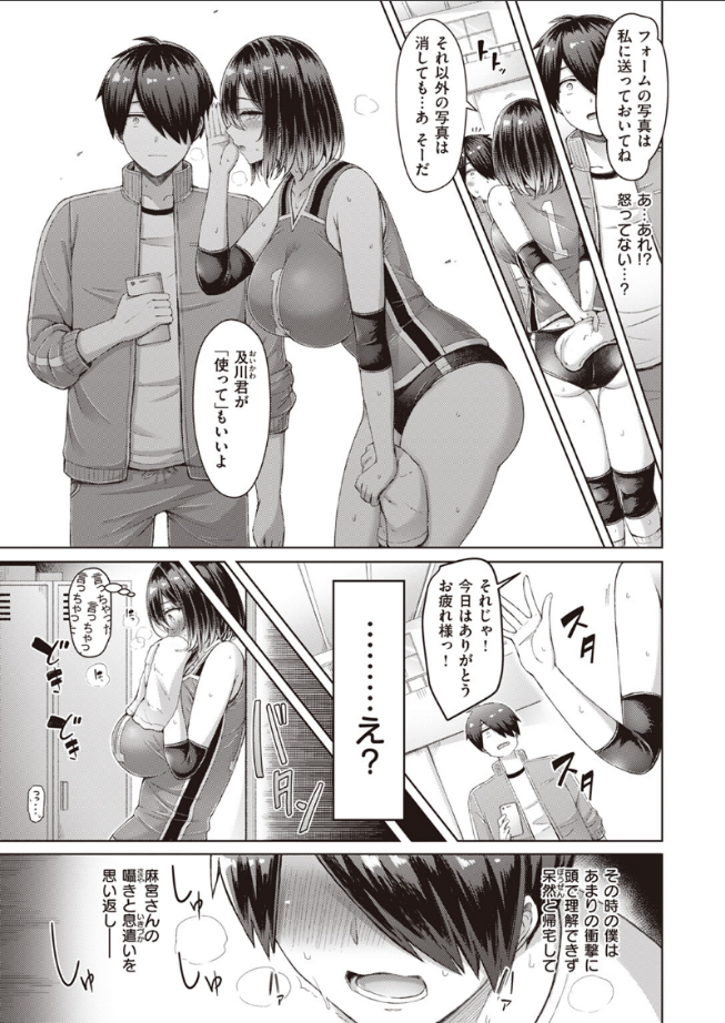 「実物ならもっと興奮したりする?」元女子校で女子ばかりの学校には男子バレー部がなく、仕方なく女子バレー部のマネージャーになった及川(おいかわ)君。女子部員達にコキ使われるなか、キャプテンの愛華(あいか)だけは優しくしてくれる。その上、練習中に偶然撮ってしまった愛華のムッチリお尻の画像を≪使っていいよ≫と囁かれ……更に生尻を差し出した彼女から大胆な提案が!?