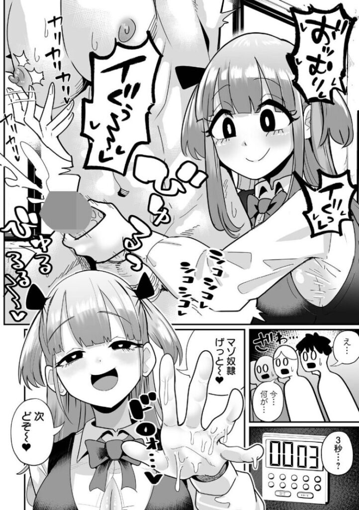 デカ尻巨乳女子・めろが『めろのエロテクに3分耐えられたらタダマンし放題!』とザコ男子達を煽る。早速めろに勝負を挑むものの、最初のチャレンジャーはめろの巧みすぎる手コキでたった3秒で沈むのだった…。『イっちゃえ、ざぁ〜こ♪』 低身長マゾ男子を言葉責めとキツい足裏臭とセックスでメロメロにしてわからせちゃうエロくてドSなデカ女たちをこれ以上ないリアルな臨場感と迫力で活写した作品を収録した電子専売ハーフコミックス【ザコマゾ・ホイホイ】は6/18 FANZA先行配信開始!※ この作品は「デカジョ! vol.5」に収録されている 作品の単話配信となります。
