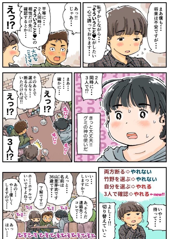 大好きなグミ「きのたけグミ」を長年食べ続けたぽっちゃり女子(36)に奇跡が起こり、「きのこっぽい男子」と「たけのこっぽい男子」に同時告白されてしまう!!選ぶなんてできない…けど話の流れでとりあえず先に体の相性だけ確認してみることに。3人でラブホテルに行きまして…いろいろあって…しまいには猫耳で中出しで子宮ぱんぱんで幸せいっぱいになってしまう!果たしてぽっちゃり女子はどっちの男子と付き合うのでしょうか…フルカラー<表紙など4P+本編46P>