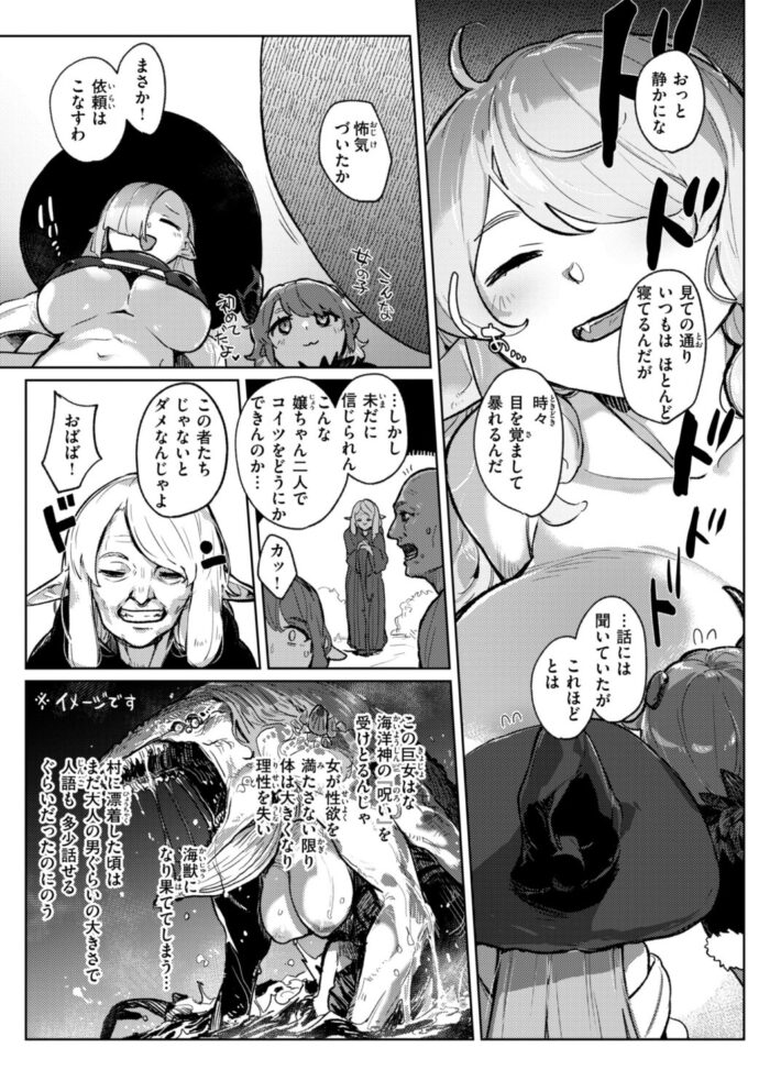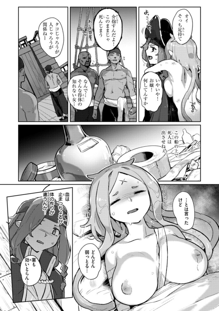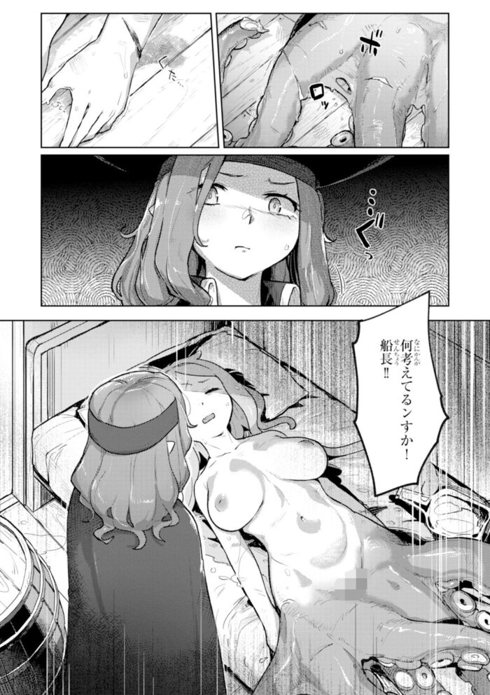 釣り上げてしまったタコ女を助けた女海賊。元気になったタコ女が女海賊のカラダをぬめぬめの触手でまさぐりだして!?『獣霊と刃』