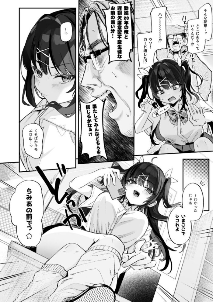 2024年夏コミの新刊です。冴えない童貞体育教師「高山高史」は女子更衣室の盗撮をするのが趣味だった。それが頭はバカだが実家が太く、恵まれた容姿を持つ「石動らみあ」にバレてしまった。見た目はよくても中身は最悪のコイツに狙われたが最後、俺をクビにするための証拠集めにあの手この手で誘惑してくるのだった。絶対にこんなバカガキに負けない!性欲と人生を天秤に掛けてシコります。【内容】見抜き、フェラ、素股、騎乗位、乳首攻め(女)などパイズリが描けなかったので次回以降に描きます…!頭の悪い同士のセックスで基本的に和姦よりです。