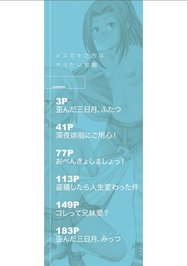 【第1話試し読み付き!!】メスガキにやられまくって降参した僕!でも、尽き果てるまで許してもらえなかった!エロガキを俺のチ〇コでわからせるつもりが、ビッチマ〇コにめちゃくちゃ指導されてしまった!勉強のストレスで鬱憤を溜めていた主人公は、小さな女の子の前で恥部を晒す露出狂だった。しかし無知な女の子二人は興味津々で、主人公に言われるがままフェラチオや裸を晒していく。そのまま流れでセックスするのだが、実は女子達は知らないふりをしていただけのメスガキで…!?本文『深夜徘徊にご用心!』より【収録作品】1 歪んだ三日月、ふたつ2 深夜徘徊にご用心!3 おべんきょしましょっ!4 盗撮したら人生変わった件5 コレって兄妹愛?6 歪んだ三日月、みっつ(描き下ろし)【購入特典】紙書籍発売時の販促用ペーパー裏表紙イラスト(制服バージョン)