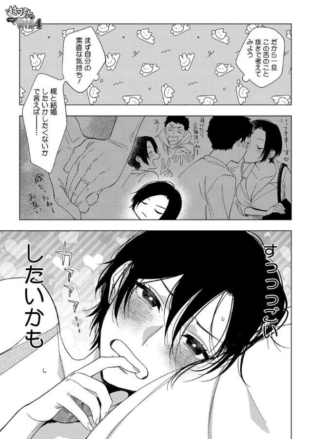 上司の村又さんは梶との関係を真剣に考え、結婚への迷いや不安と向き合うことに。自身の立場や年齢差、周囲の目を気にしつつも、「梶と一緒にいたい」という素直な気持ちに気付き始める。2人の甘く愛おしい時間を通じて、愛の形を模索しながら深まる恋模様を描くストーリー。