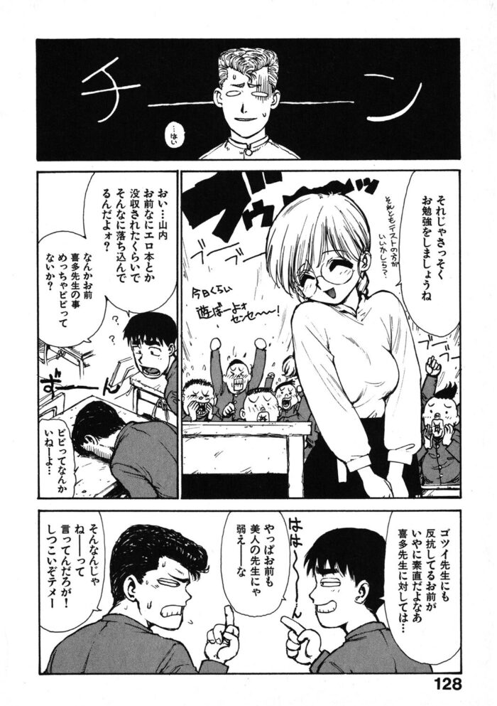 不良の山内(やまうち)が恐れるものは――美人教師の喜多(きた)先生。しかし、彼女は可愛くて、清楚で、巨乳で、ズリネタにする学生たちも多数の人気教師。クラスメイトの西田も喜多先生でエロ妄想が止まらず……。