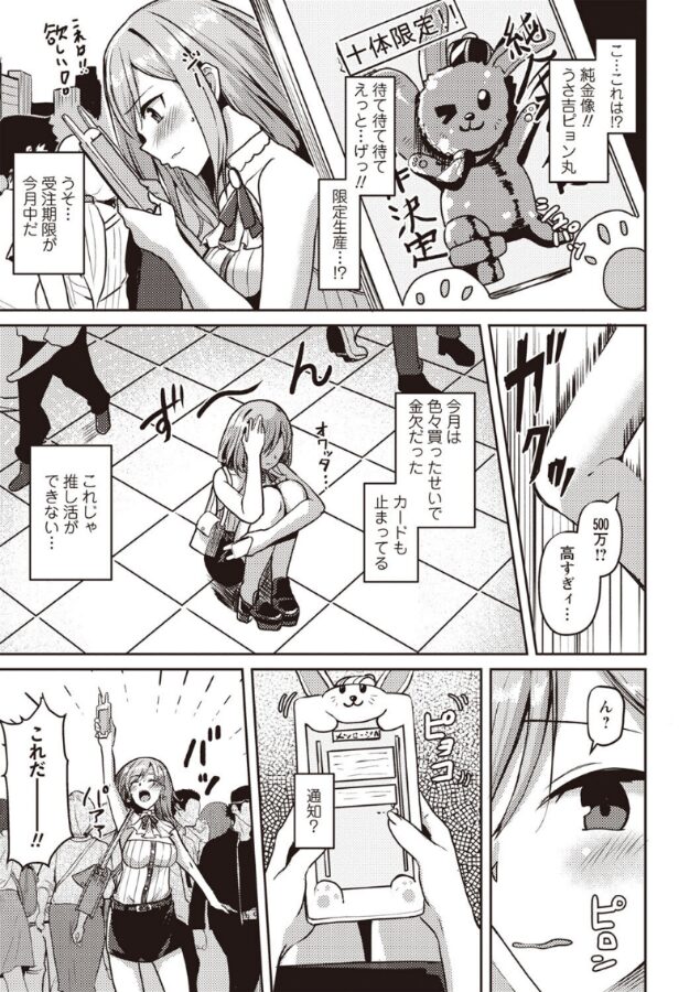 ☆祝!!!本誌初登場☆オナサポマッチングアプリ☆そのトップ嬢に君臨する琴ノ葉ちゃん(処女)は推しマスコット「うさ吉ピョン丸」の限定アイテムを手に入れるために日々’オナサポ’で荒稼ぎ!さて本日のお客はお金持ちのようで…いつものようにオナサポをしていると追加オプションが飛ぶように売れていき…って待って!!処女を買うなんて聞いてないよっ!?