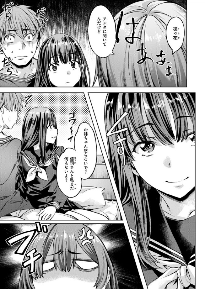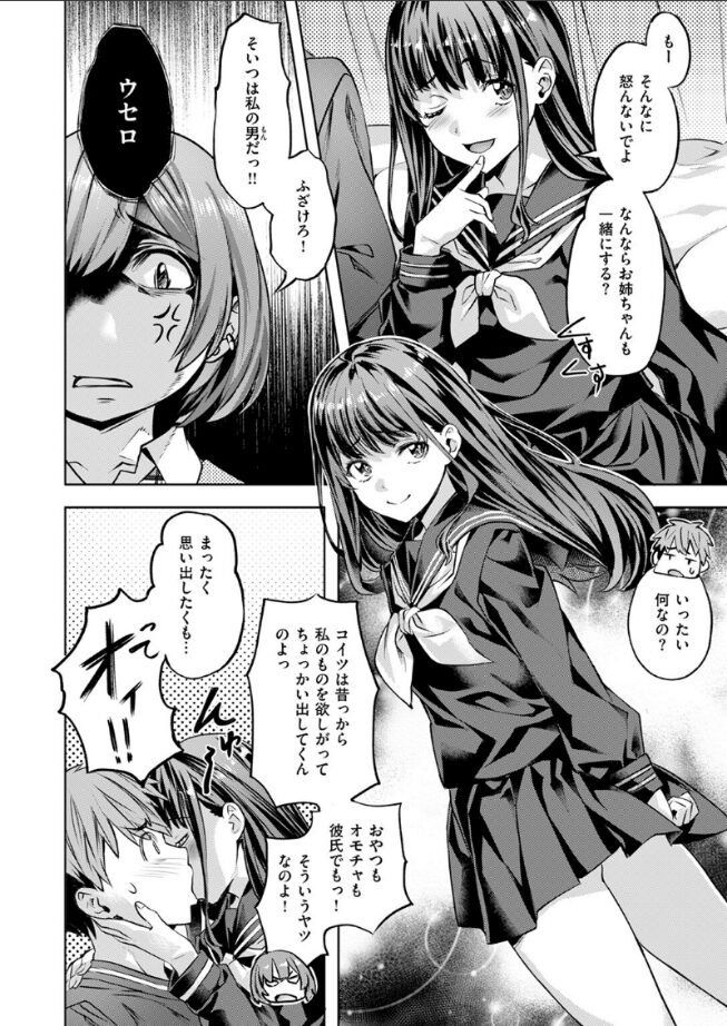 「私 結構自信あるんですよ そっちの方は」桃香(ももか)が彼氏の優司(ゆうじ)の部屋に忘れものを取りに帰ると、何故かそこには妹の凜々花(りりか)が!?凜々花はいつも姉の彼氏を寝取る小悪魔だった!いきなり優司にキスをする凜々花の行動にキレた桃香は凜々花と張り合い、遂には3Pに……!?